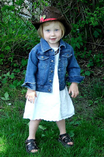 Ha ha! Isn't that the CUTEST thing you've ever seen?! I went to Goodwill today, and that is the sort of thing I just can't resist for $4. I had to put it on her right away, of course, and it fits really well.