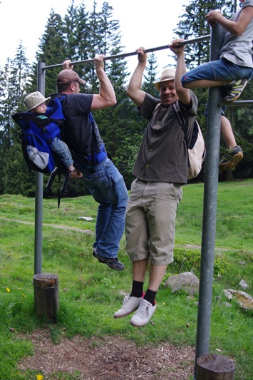 By the way, I can do four pull-ups and Brett can do three while holding Orrin, a heavy baby backpack and some food on his back. It was super awesome.