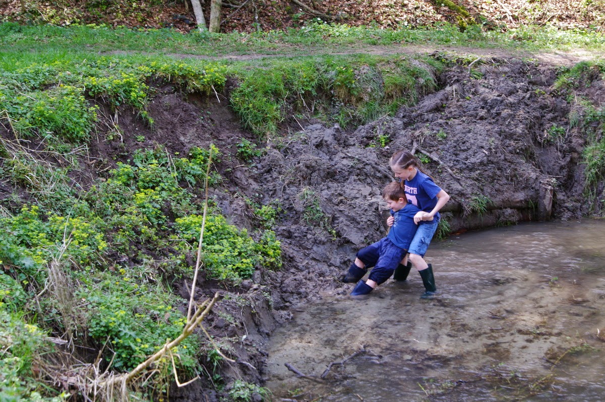 Remember way back when, when we came to this same creek and little teeny Ethne said, "There's water in my boot!!!  It's cold!  Coldy coldy coldy."  (You really should watch that video, it's funny.)  This time water got in her boot again.