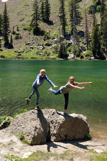 The first day of July, a gorgeous sunny day, we invited our two neighbor friends, Wesley and Millie, and we all hiked to White Pine Lake. That is a 4-mile hike one-way, and Navy walked the WHOLE way there completely on her own, without being carried at all--that's amazing! Then we ate lunch, did handstands, climbed rocks, balanced on logs, jumped over logs, played in snow (a lot), gathered flowers, waded in the water, and walked around the entire lake before hiking back (probably 10+ miles all together). We were one tired bunch by the end of the day, I can assure you! But it was sooo beautiful and fun!