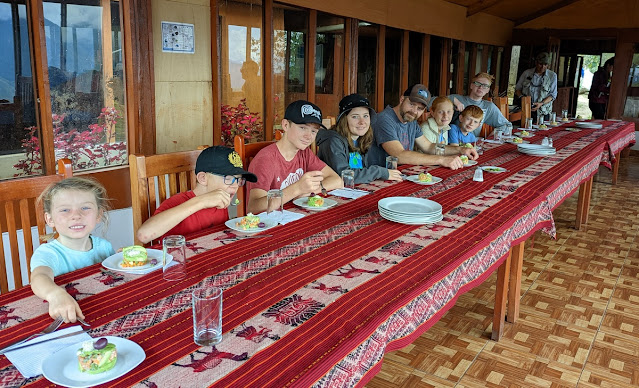Then we got to our lodge and had lunch. Hooray! The table is long so that everyone can sit on the one side and look out the window to the view of Machu Picchu.